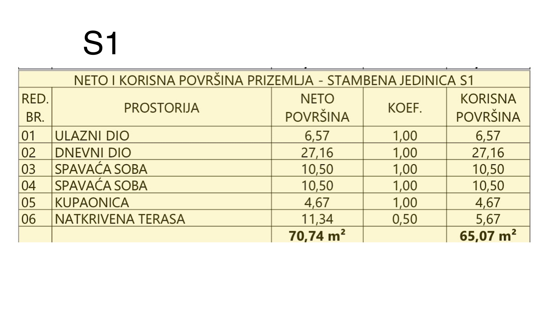 Prodaje se stan ukupne korisne površine 81 m² (s uračunatim koeficijentima), koji dolazi s pripadajućim dvorištem i osiguranim 2 parking mjesta. Stan je smješten u prizemlju, oznake S1 u stambenoj zgradi s ukupno četiri stambene jedinice. Riječ je o novogradnji, trenutno u završnoj fazi izgradnje, s planiranim dovršetkom radova do ljeta 2026. godine. Zgrada se gradi kvalitetnim materijalima i biti će opremljena prema posljednjem standardu gradnje.