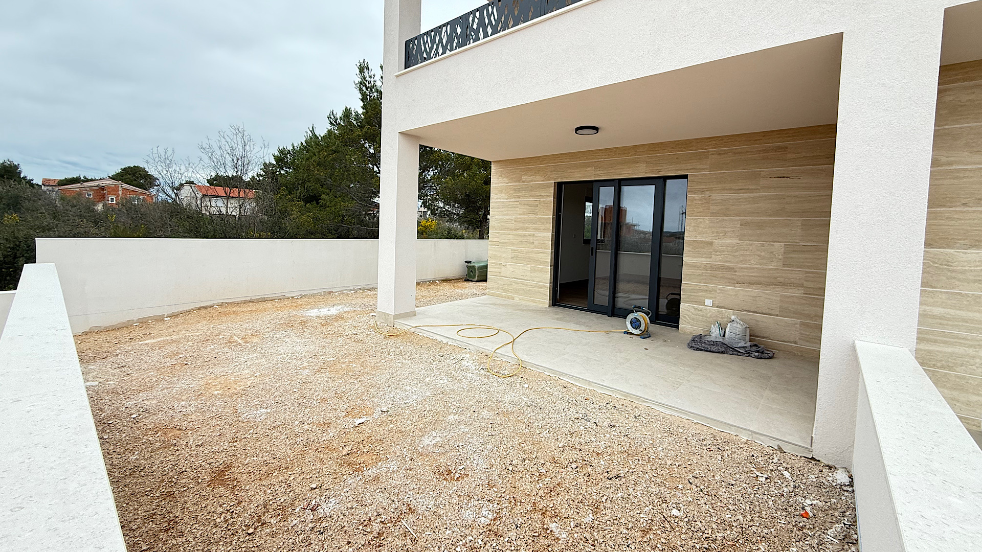 Ovaj prizemni stan idealan je za sve koji traže novogradnju blizu centra i plaže, s vlastitim dvorištem i parkirnim mjestima. Funkcionalan raspored, visokokvalitetni materijali i tehnička oprema osiguravaju udobnost i sigurnost, a prizemni položaj olakšava pristup i korištenje vanjskog prostora.