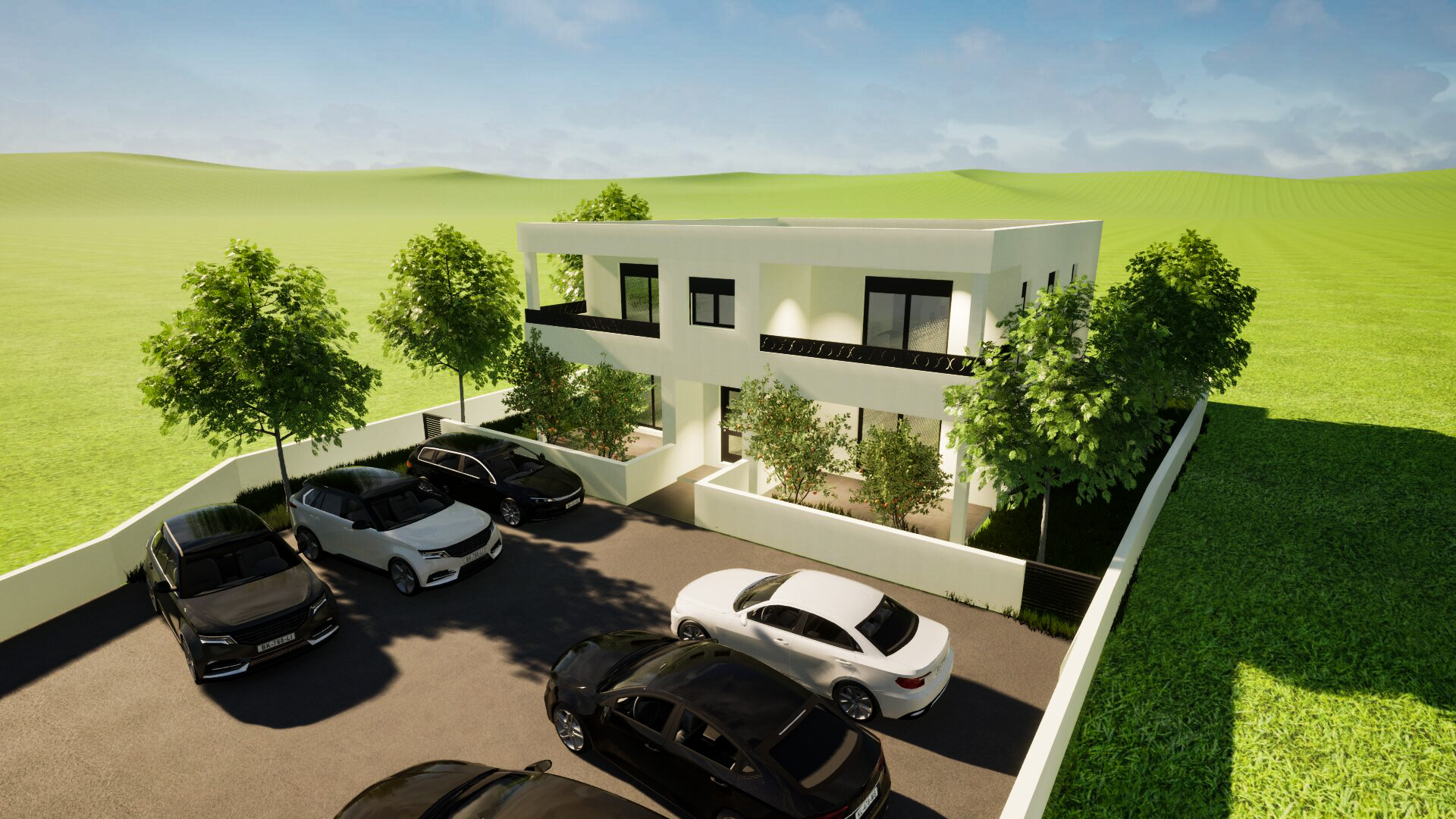 Stanu pripadaju dva parkirna mjesta. Točne kvadrature stana i pripadajućih dijelova biti će definirane etažnim elaboratom.